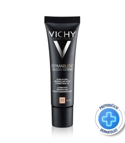 VICHY DERMABLEND 3D Korektivni puder za masnu kožu sklonu aknama s visokim stupnjem prekrivanja, 30 ml, 25 Nude – za masnu kožu sklonu aknama