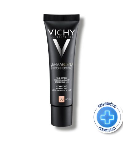 VICHY DERMABLEND Tekući puder za korekciju neujednačene boje kože SPF28, 30 ml, 30 Beige – za korekciju tena