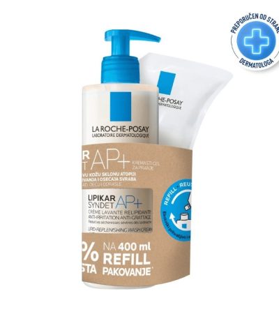 La Roche-Posay LIPIKAR SYNDET AP+ Kremasti gel za tuširanje obogaćeno lipidima protiv nadraženosti i svrbeža, pogodno za bebe, djecu i odrasle, 400 ml – za njegu osjetljive kože