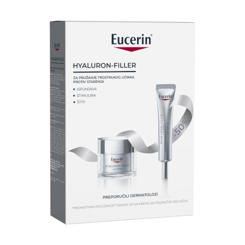 Jedinstvena Eucerin formula s visoko i nisko molekularnom hijaluronskom kiselinom i arktinom (aktivator koji dokazano ubrzava obnovu kolagena u stanicama kože) vidljivo ispunjava duboke bore za zaglađenije područje oko očiju te svježiji i odmorniji izgled kože.
