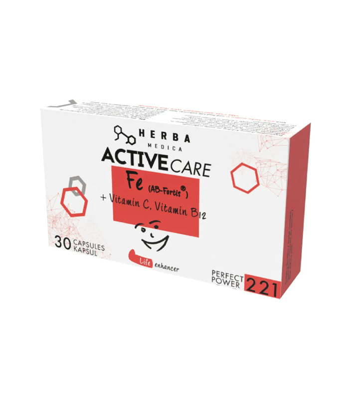 Herba Medica ACTIVE CARE Fe AB-Fortis + Vitamin C + Vitamin B12 30 kapsula – za normalno stvaranje crvenih krvnih zrnaca i hemoglobina