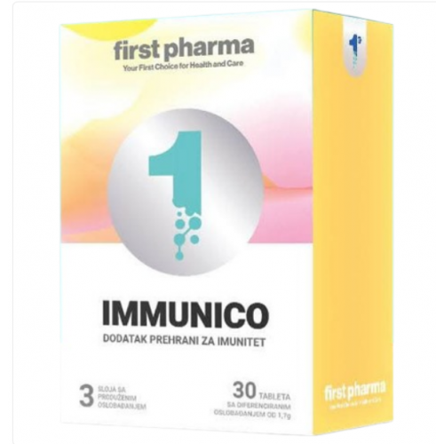 Immunico je dodatak prehrani s troslojnom tabletom dizajniranom za produženo oslobađanje i maksimalnu apsorpciju aktivnih sastojaka. Sadrži kombinaciju 11 vitamina i 8 minerala koji doprinose pravilnom funkcionisanju imunološkog sistema i podržavaju opštu vitalnost organizma.