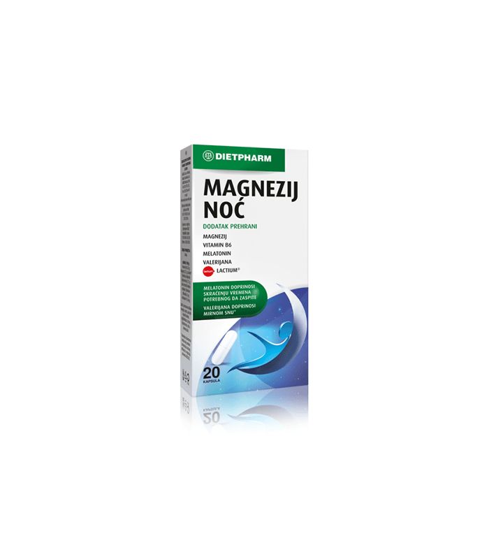 Dietpharm Magnezij Noć kapsule sadrže magnezij, vitamin B6, ekstrakt valerijane i melatonin.