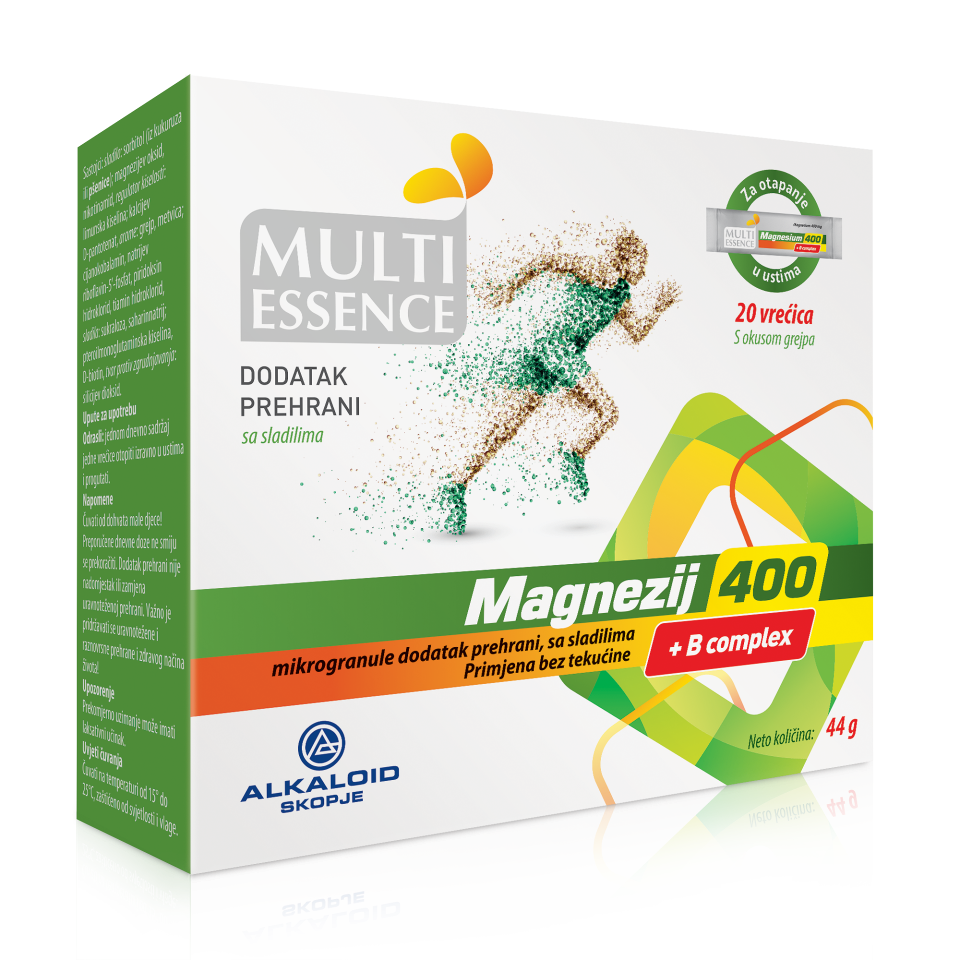 MULTI ESSENCE MAGNEZIUM 400 + B COMPLEX, 20 kesica – za funkciju nervnog sistema i smanjenje umora