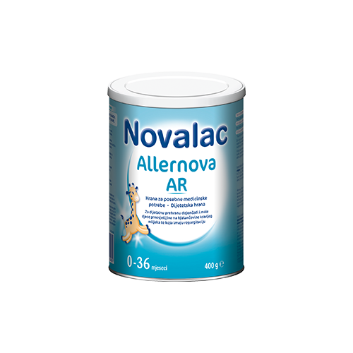 Novalac Allernova AR je hrana za posebne medicinske potrebe dojenčadi i male djece kod preosjetljivosti na bjelančevine kravljeg mlijeka te koja bljuckaju.
